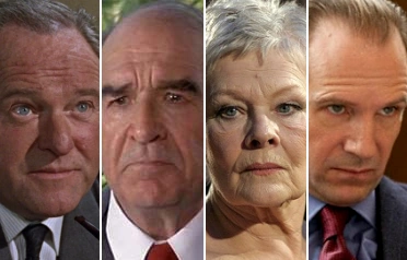 All the major versions of 'M' depicted in the Eon film series.